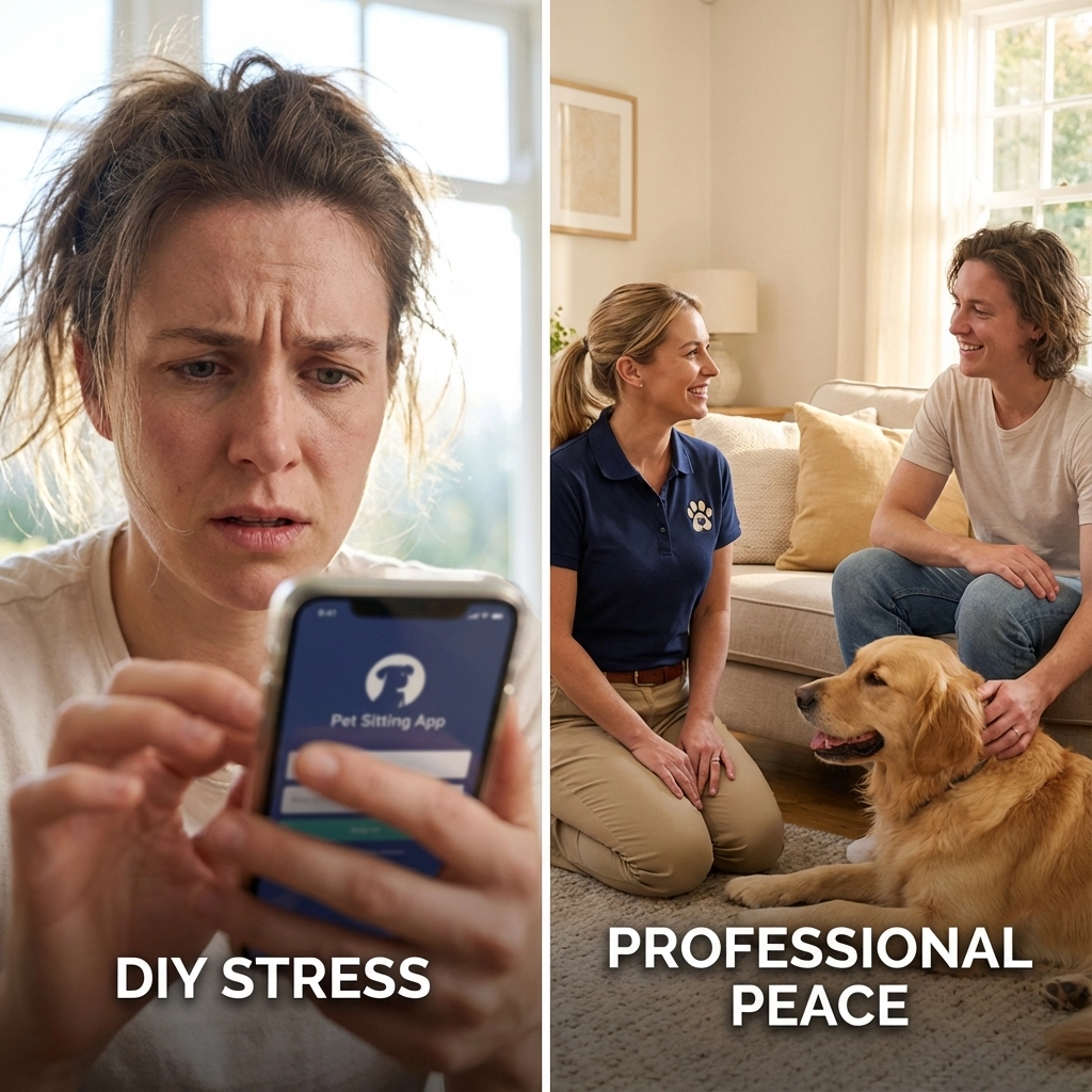 You know the scene: You're scrolling through your phone at 7 PM, realizing you completely forgot about tomorrow's early morning meeting that'll keep you away from home for 12 hours. Your dog is giving you those expectant eyes, and panic starts creeping in. Do you frantically open that pet sitting app and hope someone decent is available, or do you call your trusted professional pet sitter who already knows your pup's quirks?